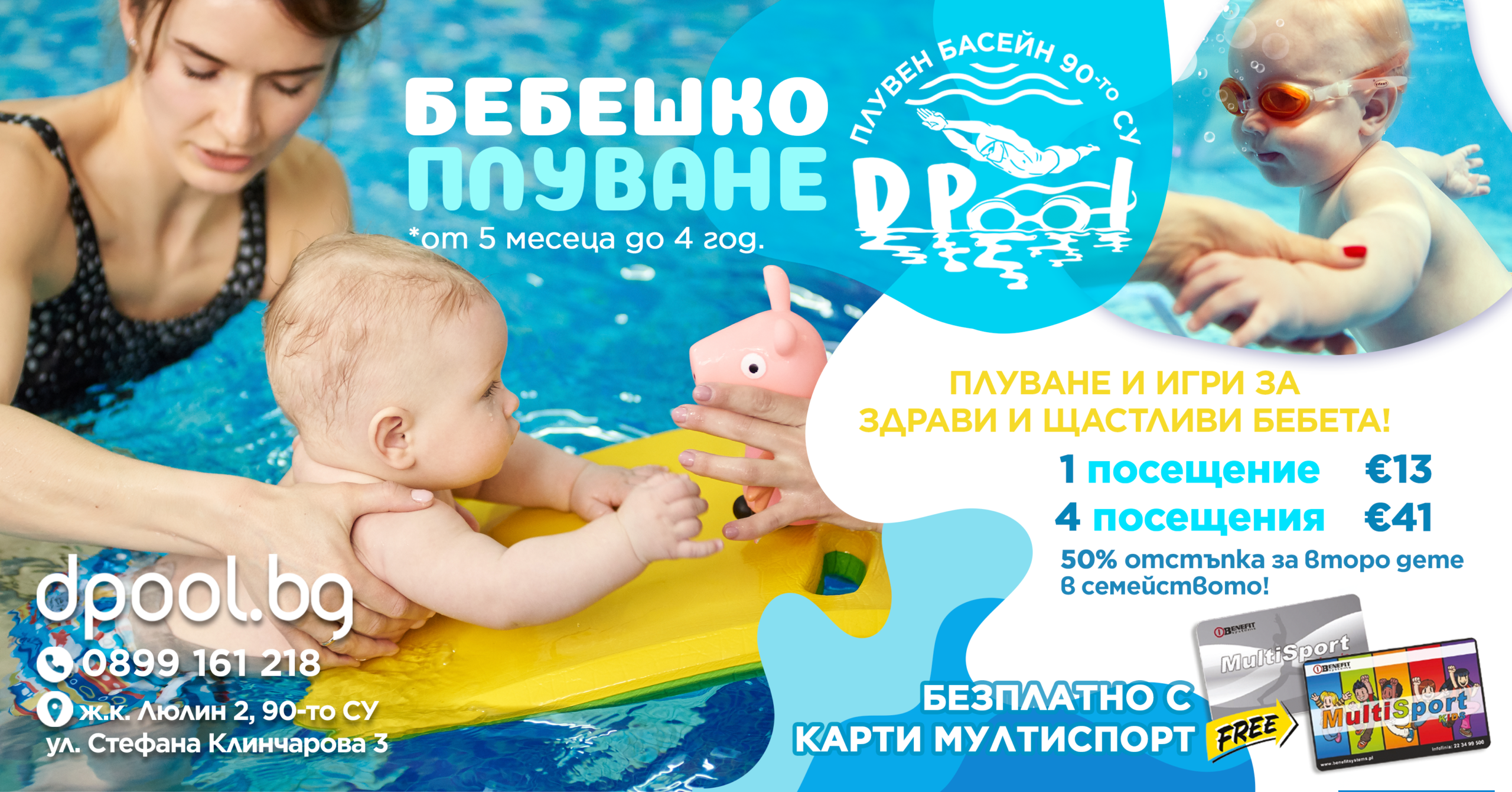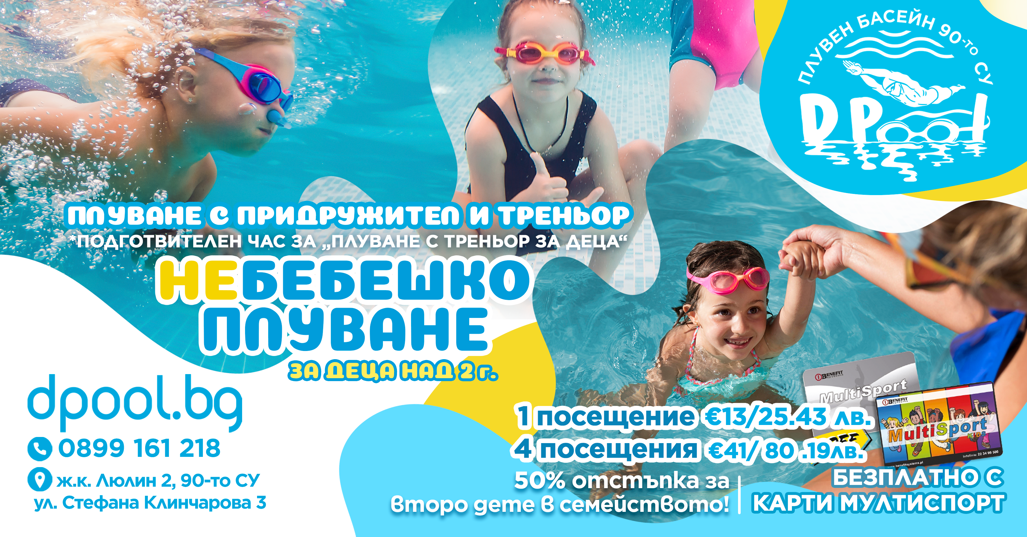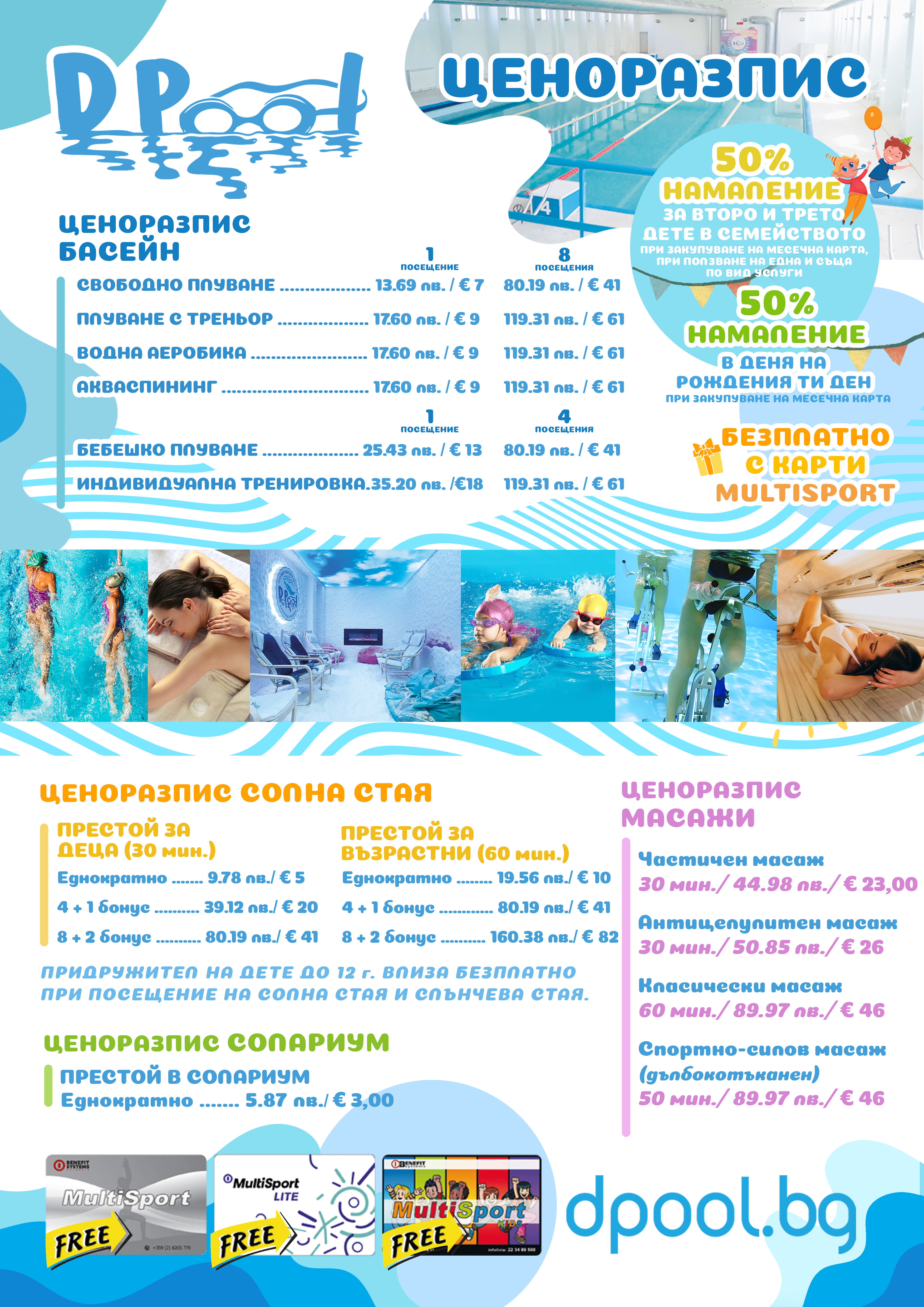 Услугите на басейна са абсолютно безплатни с карти Мултиспорт и Мултиспорт Кидс.