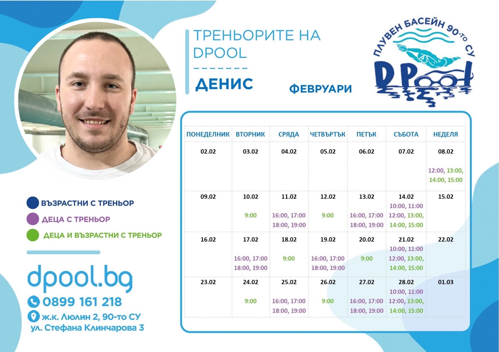Актуален график на всички дейности на басейн DPool към 18.12.25